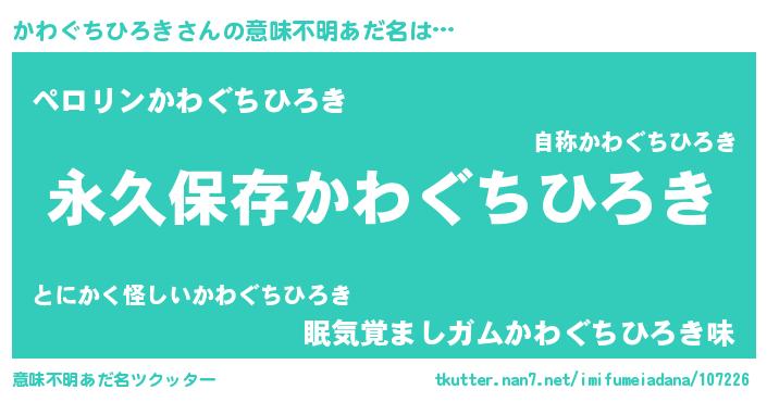 | ヘコむあだ名 | 『かわぐちひろき(笑)』『かわっふぃ~』 |