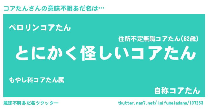 | ヘコむあだ名 | 『コアっぺ』『コアにー』『牛乳』 |