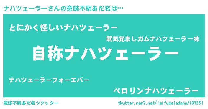 | 女子向けラノベタイトル風あだ名 | 『ナハツェーラーなんてお断りですっ。』 |