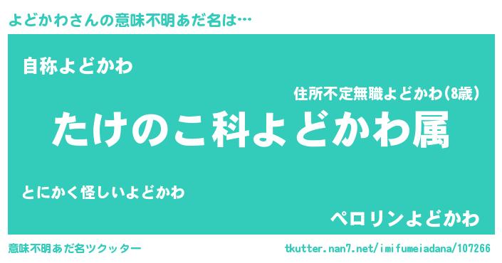 | 男性向けラノベタイトル風あだ名 | 『転生したらよどかわだった件』 |