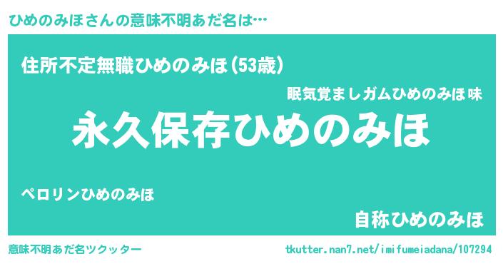 | 男性向けラノベタイトル風あだ名 | 『ひめのみほという概念が存在しない退屈な世界 』 |
