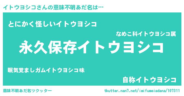 | ヘコむあだ名 | 『イトウヨシコ(小並感)』『イトぷりん』 |
