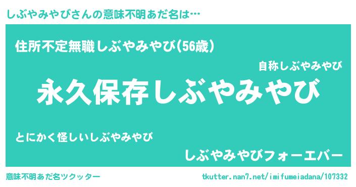 | ヘコむあだ名 | 『しぶやみやび(苦笑)』『なまこ酢』 |