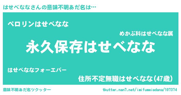 | 伝説のあだ名 | 『古より伝わる暗殺者はせべなな』 |