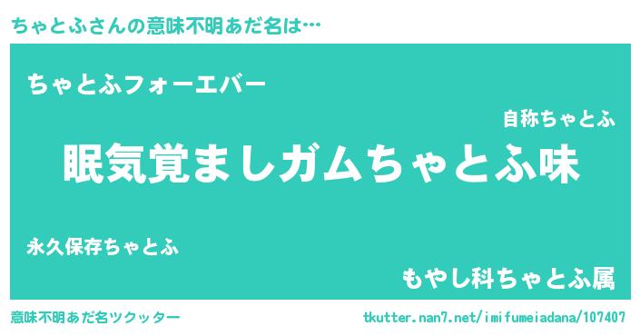 | 女子向けラノベタイトル風あだ名 | 『死神ちゃとふの再婚』『闇のちゃとふ』 |