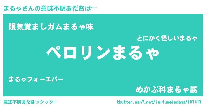 | 男性向けラノベタイトル風あだ名 | 『まるゃの憂鬱』『はたらくまるゃさま!』 |
