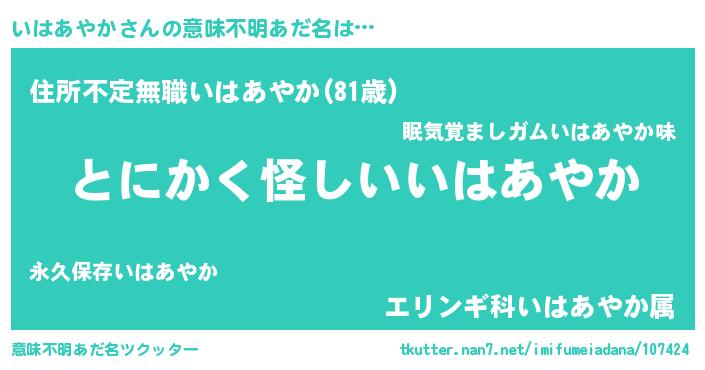 | 胡散臭い通販商品みたいなあだ名 | 『信頼と実績のサプリメント…その名も「いはあやか」』 |