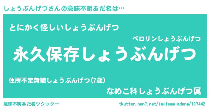 | 胡散臭い通販商品みたいなあだ名 | 『来世でも幸せになれる健康食品…その名も「しょうぶんげつ」』 |