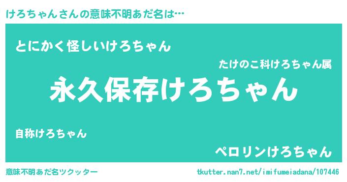 | ヘコむあだ名 | 『けろちゃん(笑)』『けろを』『牛乳』 |