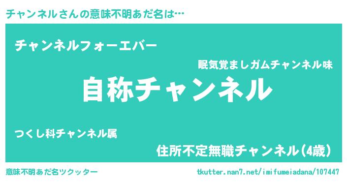 | ファンタジー風あだ名 | 『ゼチャトゥ』『エターナルチャンネルー』 |