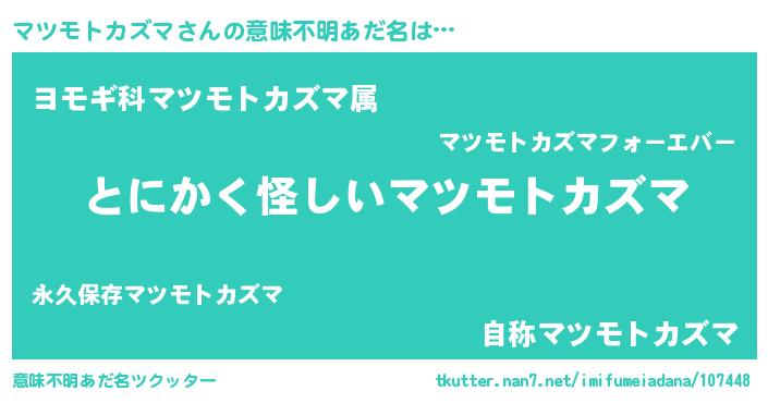 | ポケモン風あだ名 | 『ヒマツモトカズマ』『マツキング』 |