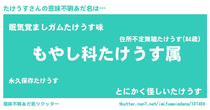 | 男性向けラノベタイトル風あだ名 | 『転生したらたけうすだった件』 |