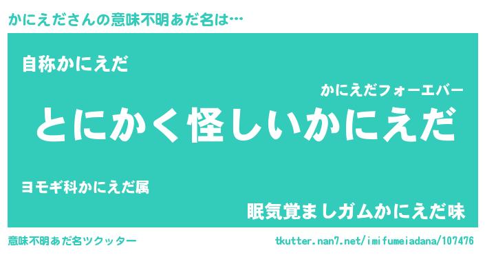 | 男性向けラノベタイトル風あだ名 | 『かにえだの嫁は女の子じゃないと思った?』 |