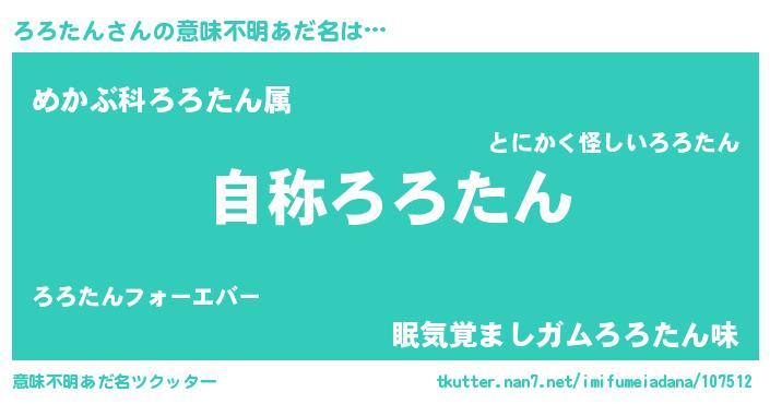 | 男性向けラノベタイトル風あだ名 | 『Re:ろろたんから始める異世界生活』 |
