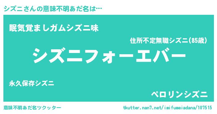 | 男性向けラノベタイトル風あだ名 | 『やはりシズニの青春ラブコメはまちがっている 』 |
