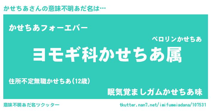 | 女子向けラノベタイトル風あだ名 | 『かせちあの玉の輿計画!』 |