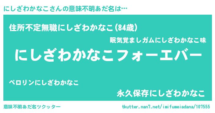 | 胡散臭い通販商品みたいなあだ名 | 『世界が平和になる高級そうな皿…その名も「にしざわかなこ」』 |