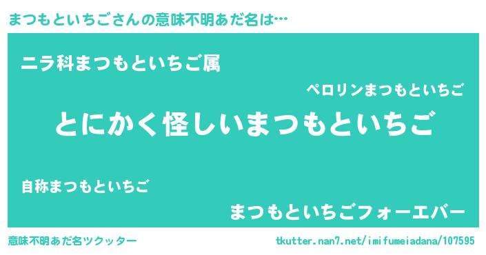 | 男性向けラノベタイトル風あだ名 | 『ダンジョンにまつもといちごを求めるのは間違っているだろうか』 |