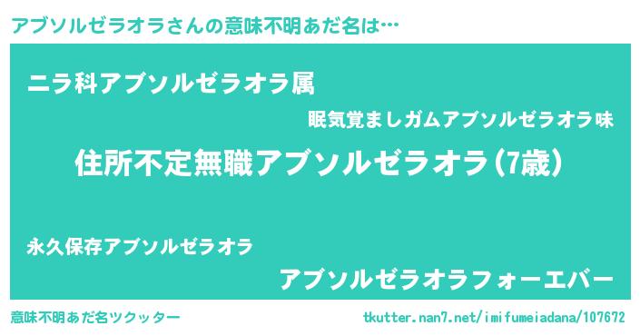 | 欧米人風あだ名 | 『ダレノガレアブソルゼラオラ』 |