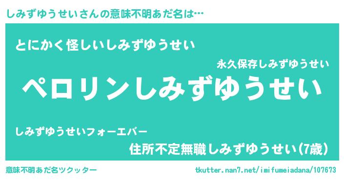 | ヒーロー風カッコイイあだ名 | 『スーパーシミズユウセイ』 |