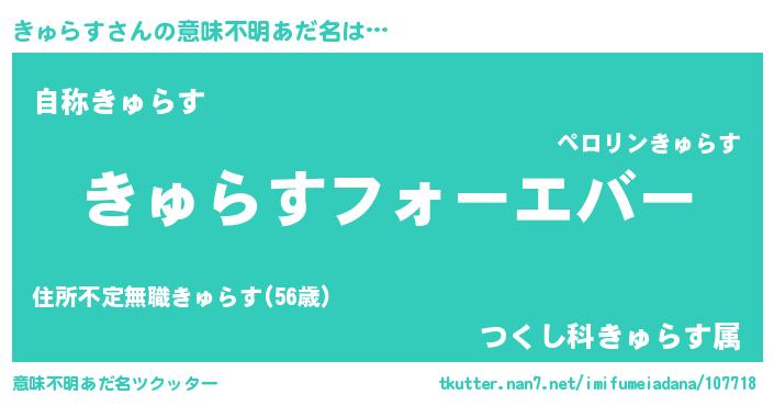 | 欧米人風あだ名 | 『きゅらすクリステル』 |