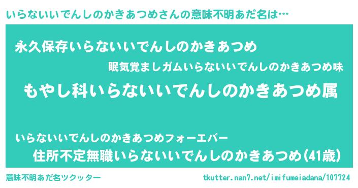 | 料理風あだ名 | 『いらないいでんしのかきあつめとほうれんそうの和風グラタン』 |