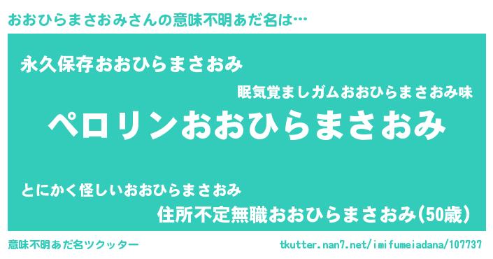 | ヘコむあだ名 | 『おおにゅー』『おおひらまさおみ(苦笑)』 |
