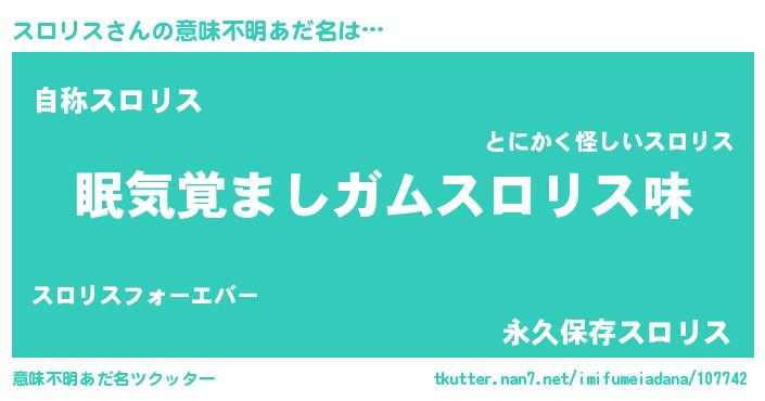 | 女子向けラノベタイトル風あだ名 | 『スロリス恋絵巻』『スロリスの契約王妃』 |