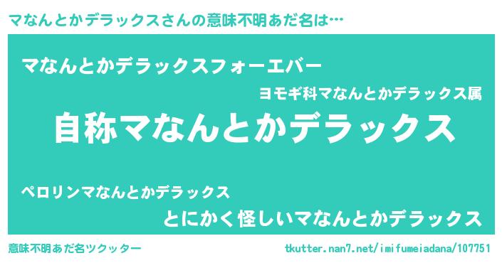 | 女子向けラノベタイトル風あだ名 | 『マなんとかデラックスストレイドッグス』 |