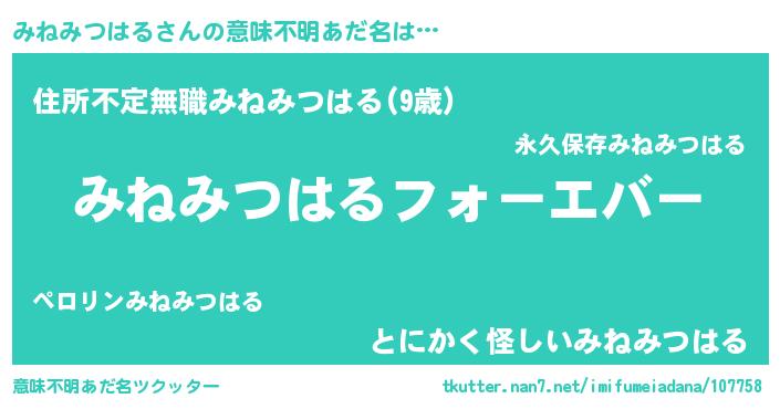 | 男性向けラノベタイトル風あだ名 | 『やはりみねみつはるの青春ラブコメはまちがっている 』 |