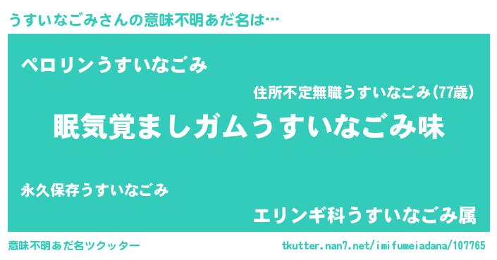 | 男性向けラノベタイトル風あだ名 | 『ノーゲーム・ノーウスイナゴミ』 |