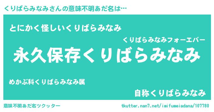 | 男性向けラノベタイトル風あだ名 | 『くりばらみなみという概念が存在しない退屈な世界 』 |