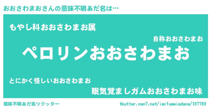 | 男性向けラノベタイトル風あだ名 | 『おおさわまおに滅ぼされるだけの簡単なお仕事です』 |