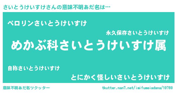 | ヒーロー風カッコイイあだ名 | 『スーパーサイトウケイスケ』 |