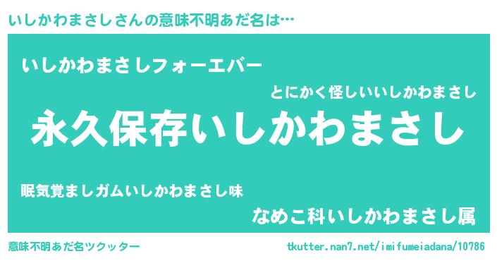 | ヘコむあだ名 | 『いしかわまさし(遠い目)』『レバニラ』 |
