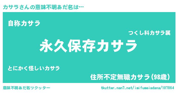 | 男性向けラノベタイトル風あだ名 | 『カサラという概念が存在しない退屈な世界 』 |