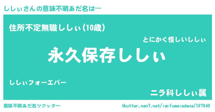 | 胡散臭い通販商品みたいなあだ名 | 『前代未聞の健康食品…その名も「ししぃ」』 |