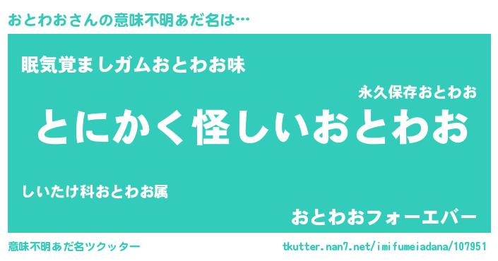 | 女子向けラノベタイトル風あだ名 | 『おとわお様がみてる』 |