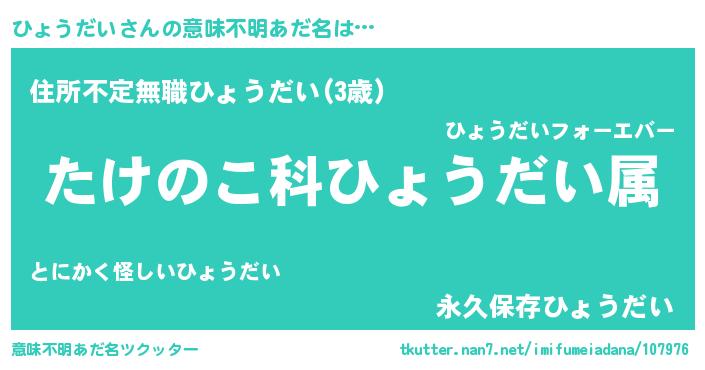 | ヒーロー風カッコイイあだ名 | 『仮面ヒョダー』『ネオヒョウダイ』 |
