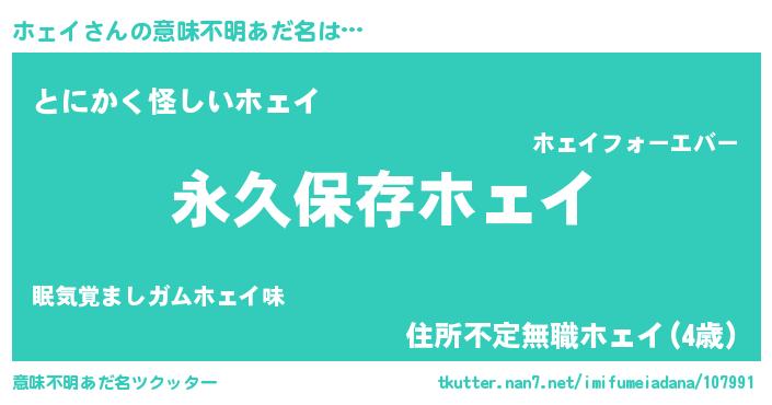 | ヘコむあだ名 | 『ホェイ(笑)』『ホェぷりん』 |