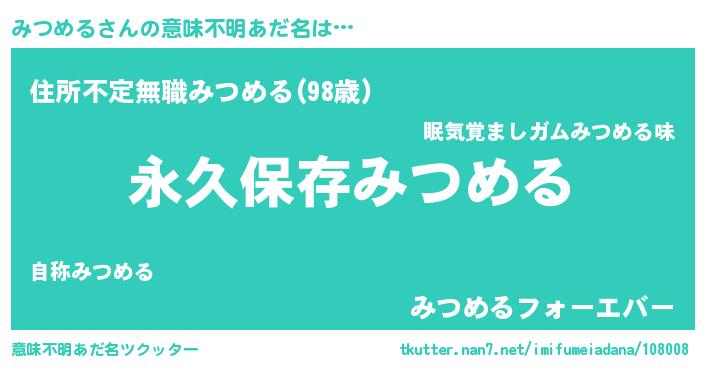 | 胡散臭い通販商品みたいなあだ名 | 『前代未聞の水素水…その名も「みつめる」』 |