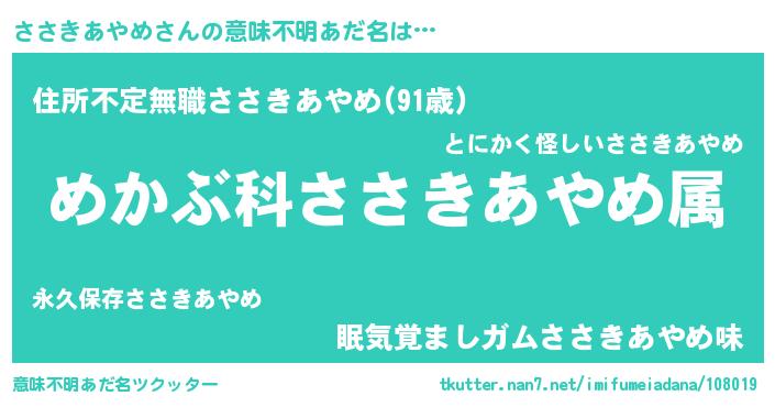 | 男性向けラノベタイトル風あだ名 | 『ササキアヤメスレイヤー』 |