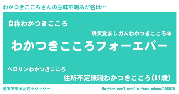 | 欧米人風あだ名 | 『わかつきこころ・ステッグマイヤー』 |