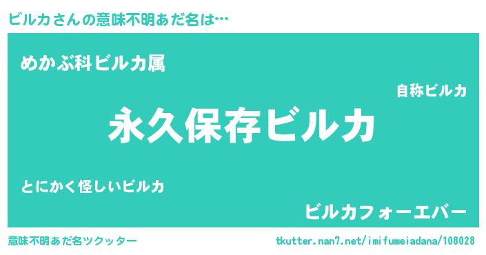 | 女子向けラノベタイトル風あだ名 | 『異世界で失敗しない100のビルカ』 |