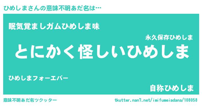 | 胡散臭い通販商品みたいなあだ名 | 『信頼と実績のサプリメント…その名も「ひめしま」』 |