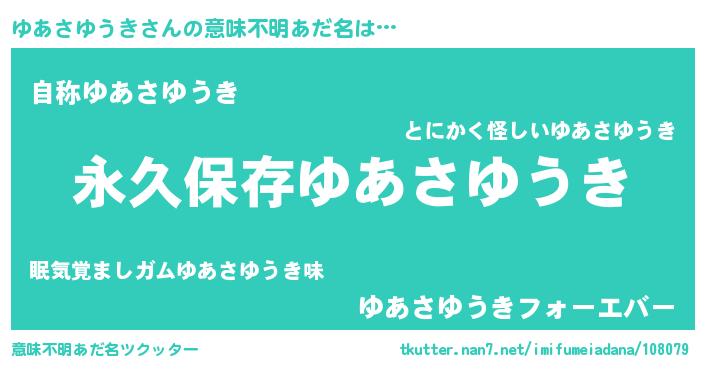 | 欧米人風あだ名 | 『ゆあさゆうき・ステッグマイヤー』 |
