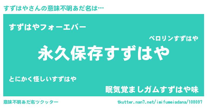 | 男性向けラノベタイトル風あだ名 | 『すずはやという概念が存在しない退屈な世界 』 |