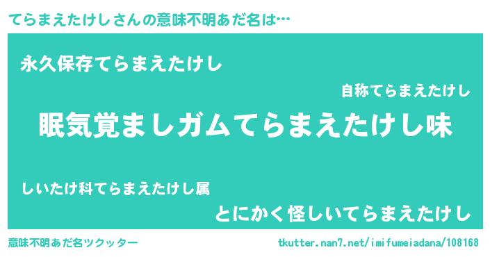 | ヘコむあだ名 | 『てらまえたけし(小並感)』『てら太郎』 |