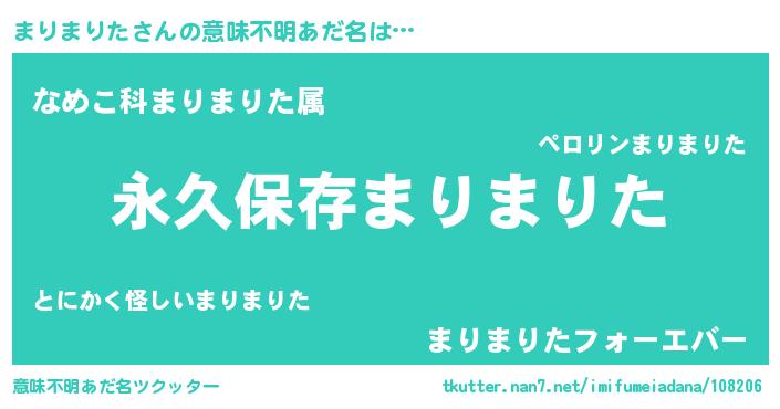 | 男性向けラノベタイトル風あだ名 | 『まりまりたという概念が存在しない退屈な世界 』 |