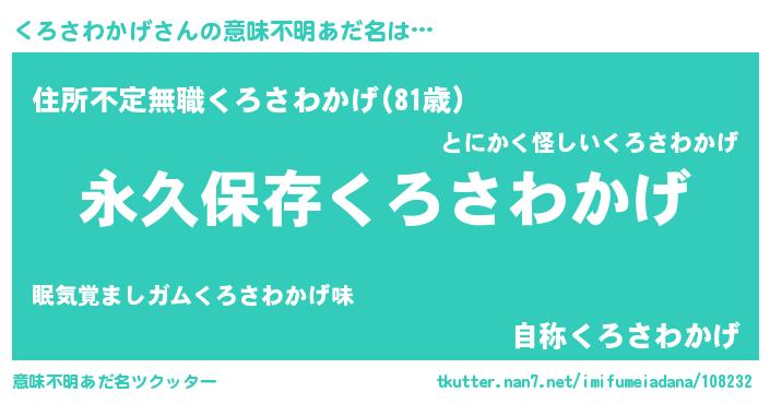 | ヘコむあだ名 | 『くろさわかげ(遠い目)』『くろぷりん』 |